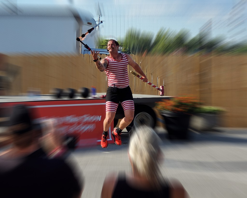 For anyone who may be confussed, he’s the one in strips. I always enjoy his shows, at a safe distance.